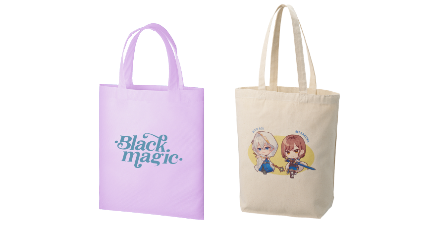 アーティストやVtuber、同人作品のイラストをあしらったトートバッグは、ライブや即売会での物販・特典グッズにぴったり。推し活や応援グッズとしても人気です。