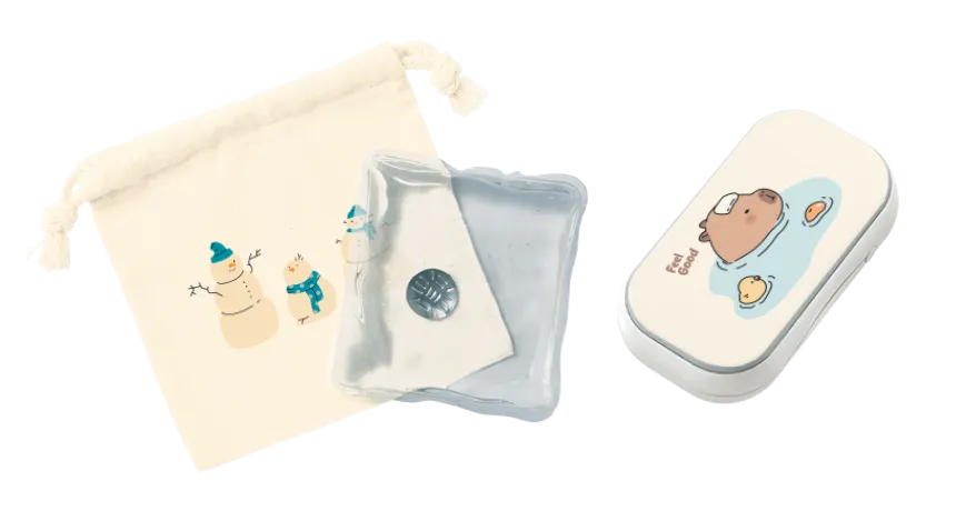ドリンク注文特典やポイント景品としても人気。カイロ本体や巾着にロゴやキャラクターを印刷すれば、“映えるグッズ”としてSNSでも話題に!