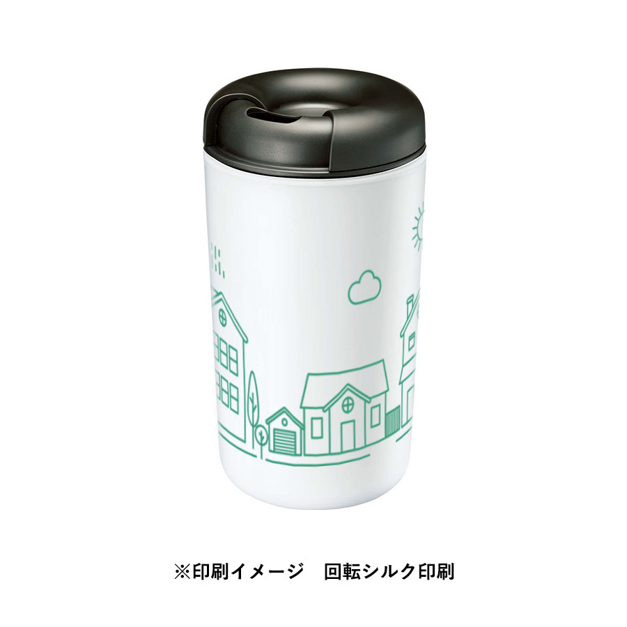 新色、ホワイト×ブラックが登場! ホワイト色の本体とブラック色の蓋を組み合わせたスタイリッシュな新色が登場いたしました。 男女問わず使用できるフォーマルなカラーです。 スライド開閉の2タイプの飲み口と、マットな質感で指紋が付きにくく指留め付きですべらないオシャレなタンブラーです。蓋を外せばシンプルなコップとしても使用可。持った手に熱を伝えにくい2重構造と分解しやすく洗いやすい仕様が嬉しい一品です。市販のストローをご利用いただくこともできるので口紅などの汚れを気にすることなくご使用いただくことも可能です。スポーツ観戦やアウトドア、デスクの上などの普段使い、どのシーンでも使いやすい商品です。