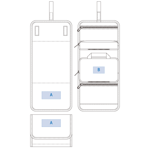 旅行や出張に便利な吊り下げベルト式ポーチです。アメニティグッズをこれひとつに収容すれば、荷物の管理も楽々出来ます。内側ポーチの2個は取り外し可能です。
