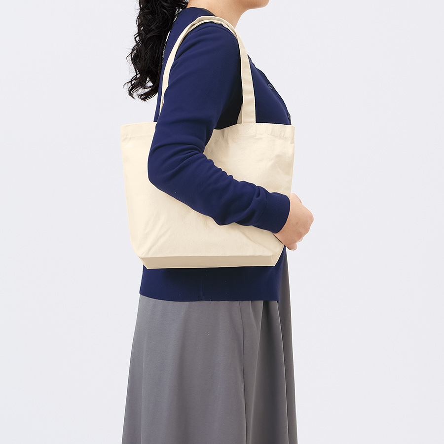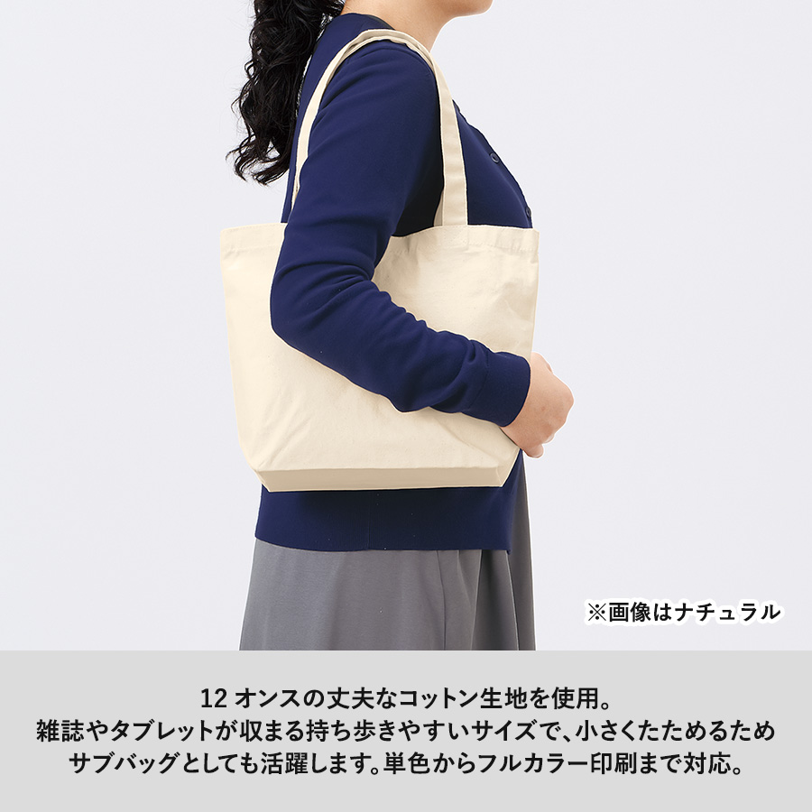 手で持ち運ぶには大きい雑誌やタブレット端末に適したトートです。厚みもしっかりあり、小さく折りたたんでバッグに忍ばせれば、サブバッグとしても使い勝手の良いサイズです。本体色も11色展開でお好みの色を選べます。