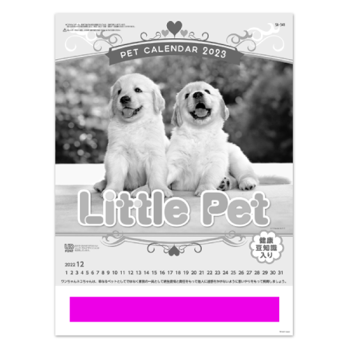 可愛い子犬や子猫の写真が大きく入った壁掛カレンダーです。ワンちゃんネコちゃんが月々順番に見られて、愛犬家、愛猫家どちらにも大好評です。 UDフォントを使用しており、誰でも見やすい仕様です。