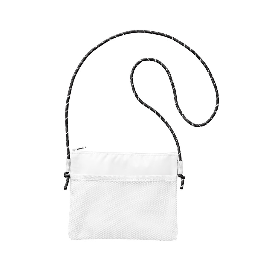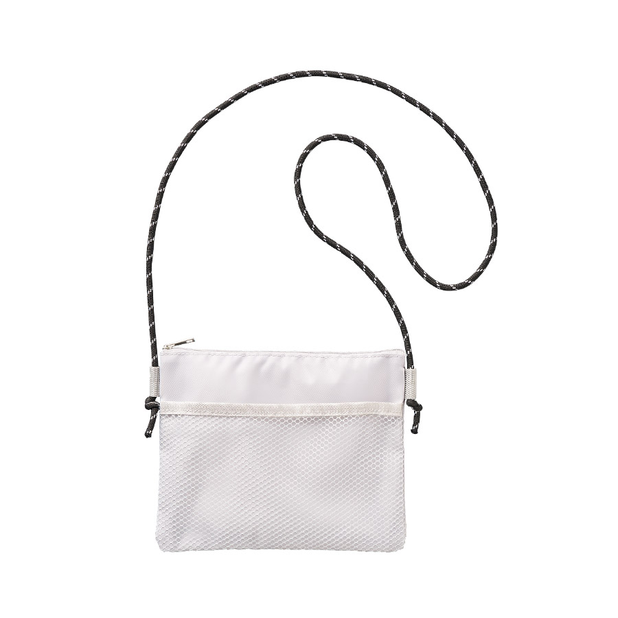メッシュポケットがポイントのサコッシュです。外ポケット付きで、チケットなどを入れるのにぴったりなサイズ感です。