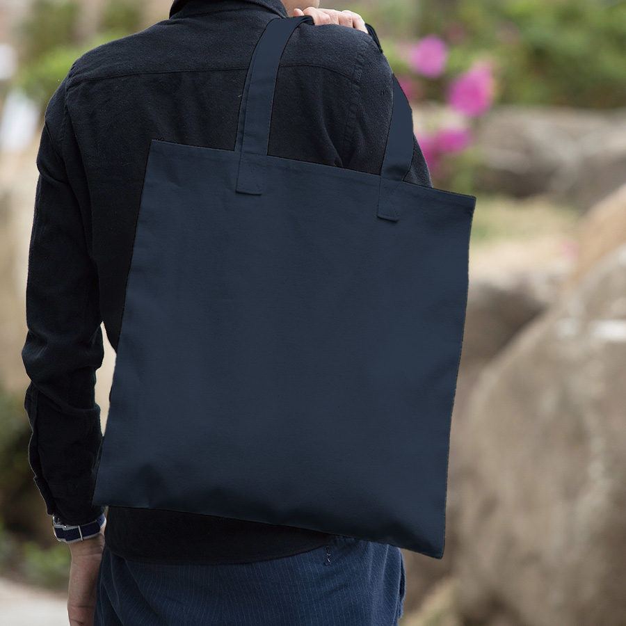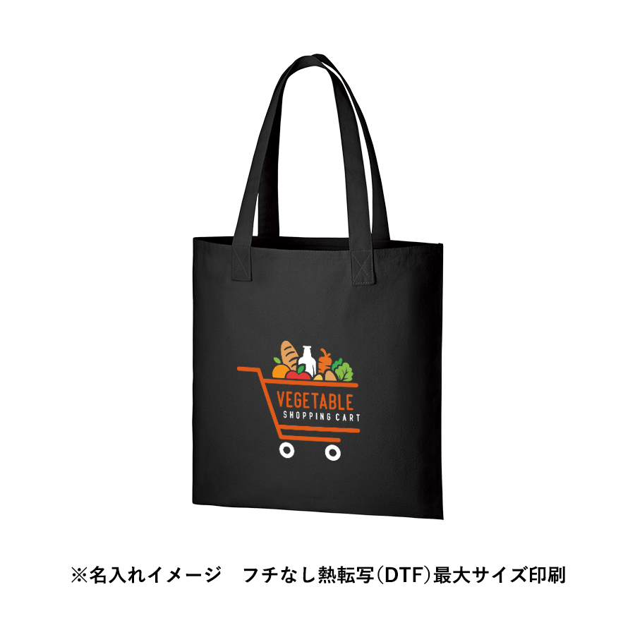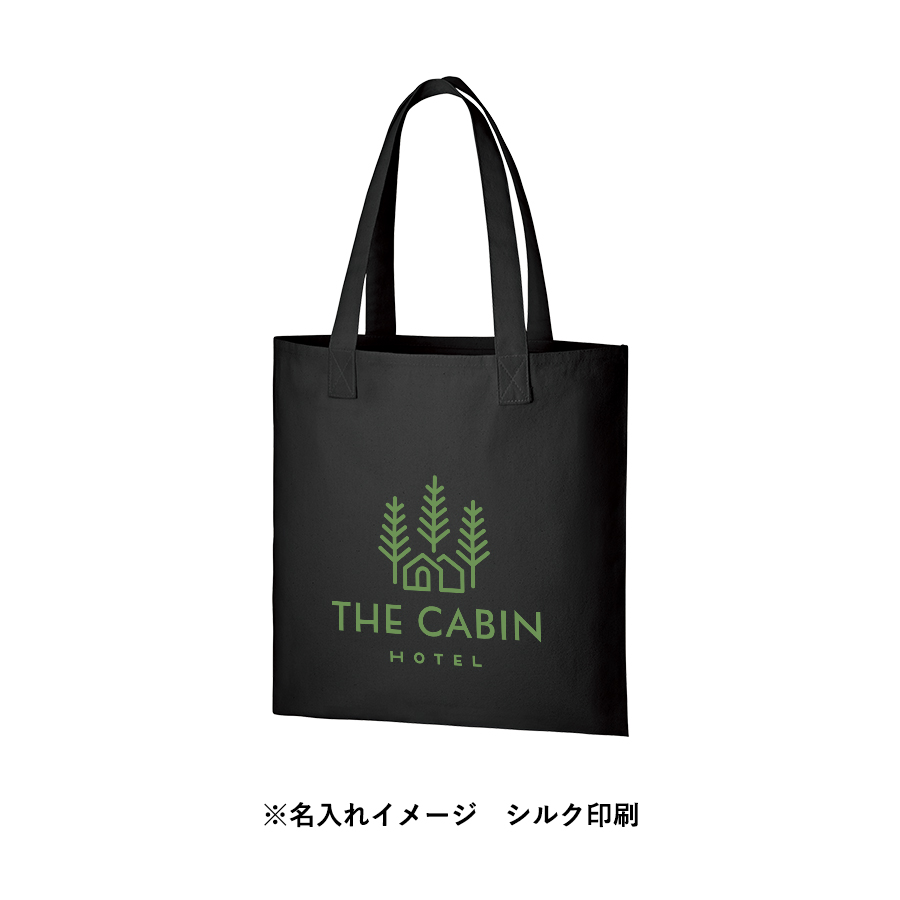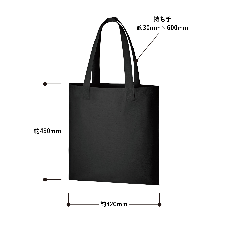 外付けのアウトハンドルに個性が光る、キャンバストートバッグです。底マチのないフラットタイプで、すっきりシンプルに感じます。丈夫な10オンスのキャンバス生地の側面に大きく名入れ印刷ができるので、オリジナルのトートバッグを作成すればノベルティや販促品にぴったりです。