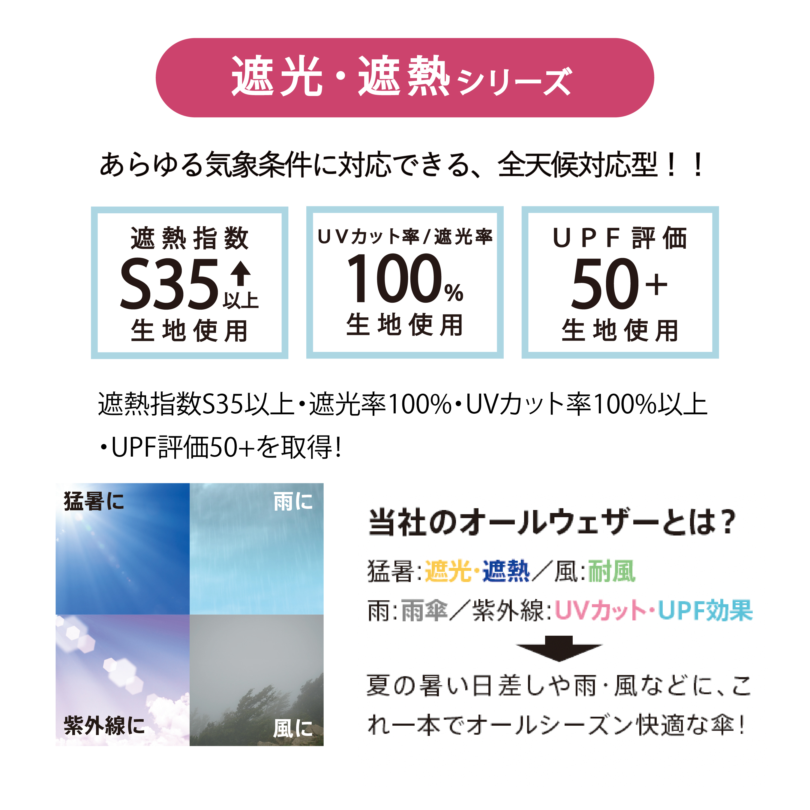 真夏の暑い日差し・日焼け対策や豪雨時など、晴雨兼用傘として便利にお使いいただけます。