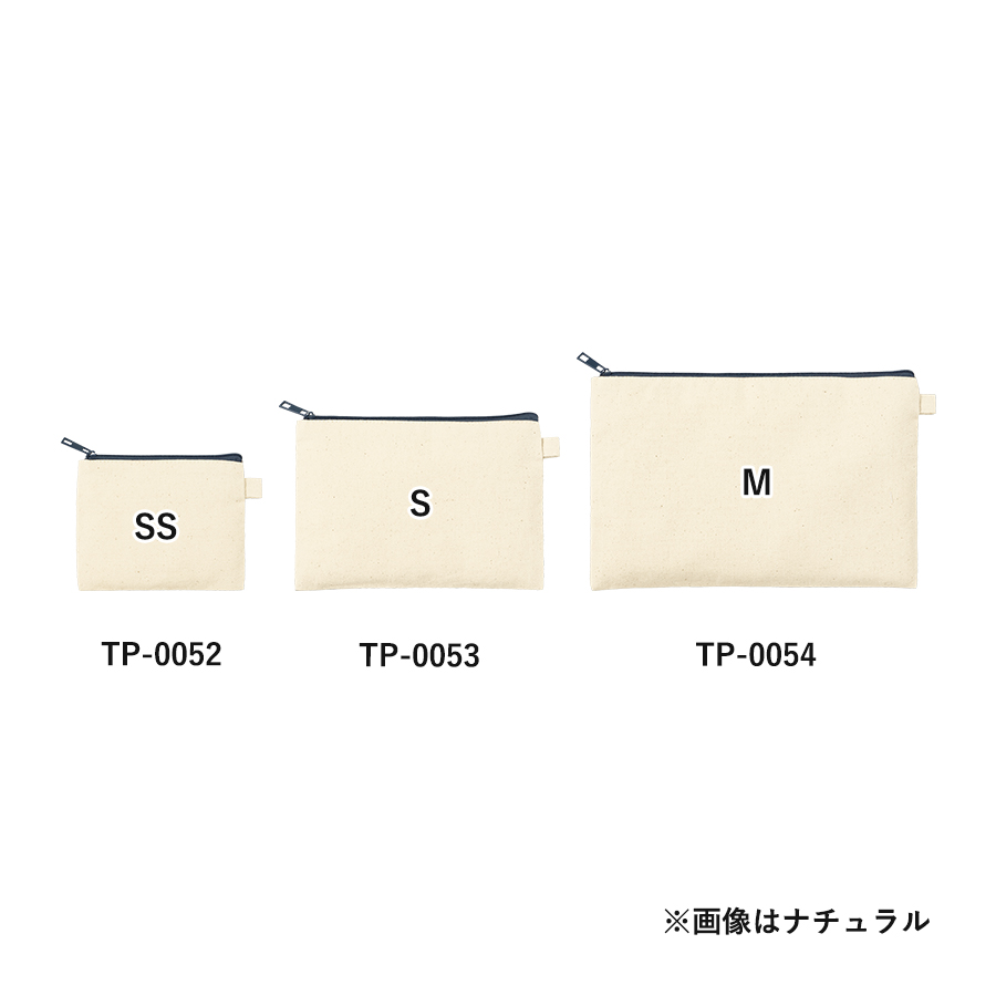 3サイズ展開でご用意しており、SSサイズはイヤホンやコスメなど持ち歩き用の小物入れにぴったりのサイズ感です。