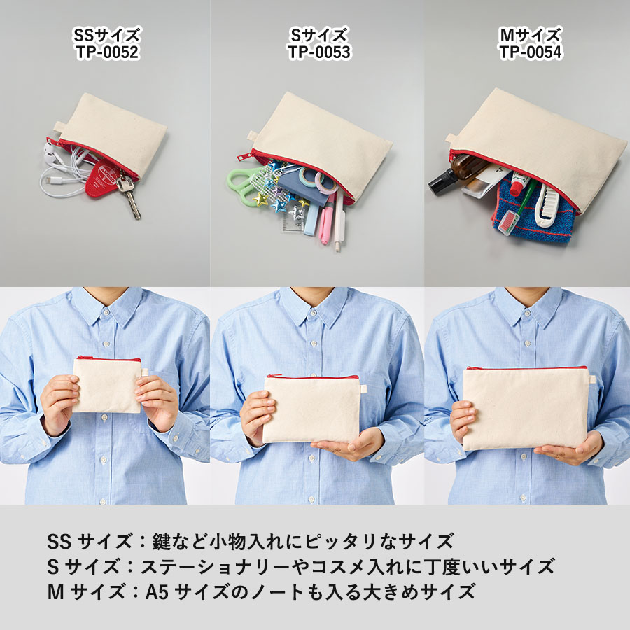 3サイズ展開でご用意しており、Sサイズはステーショナリー入れにもぴったりな程よいサイズ感です。