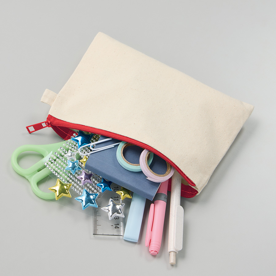 ファスナー部分はカラフルな10色展開ながら、ボディはシンプルなナチュラルカラーのためデザインを選ばずご使用いただけます。