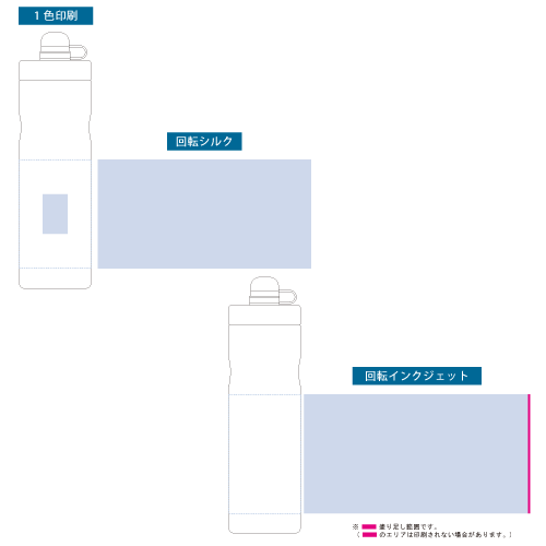 ボトル側面に単色またはフルカラーでぐるっと印刷が可能なので飲料ブランドのノベルティやアウトドアブランドの購入特典などにご提案いただけます。