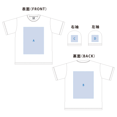 | インクジェット印刷範囲 | 正面・背面/W320×380mm左右袖/W100×H100mm ※白印刷なし |