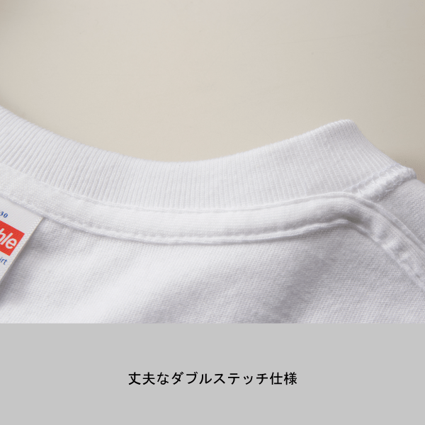首元はステッチを2本施し丈夫に仕上げているので、よれにくく伸びが抑えられシルエットが崩れにくくなっています。