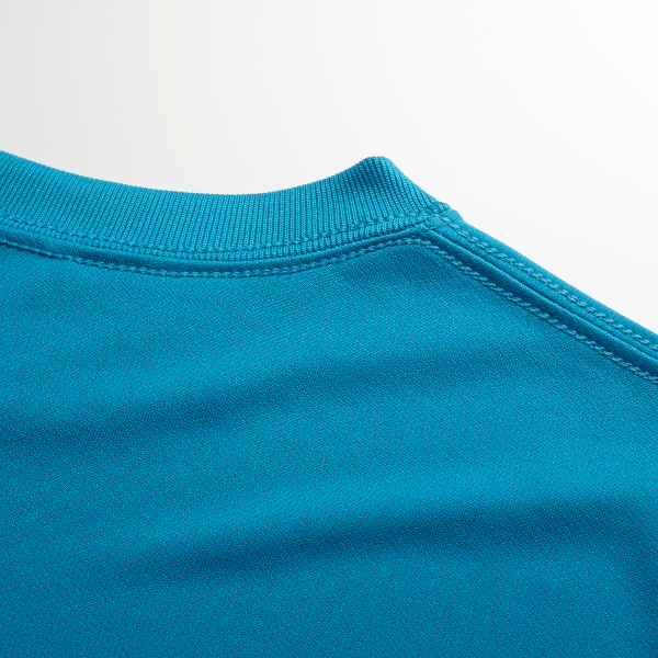 名入れの映えるなめらかなポリエステル生地は丈夫でしっかりしており、襟元はリブ仕様で丈夫なダブルステッチを施している為よれにくく、洗濯耐性をサポートしてくれます。