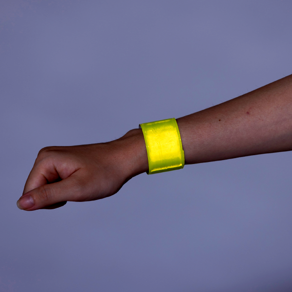 クルッと巻きつき、光に反射するリストバンド。 夜道の危険から守ります。