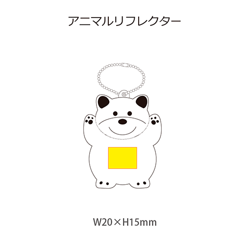 車や自転車のライトの光を反射し、相手に居場所を知らせてくれます。クマ・ネコ・ブタ・イヌのシンプルで可愛い4匹展開。お腹の部分に名入れが可能です。
