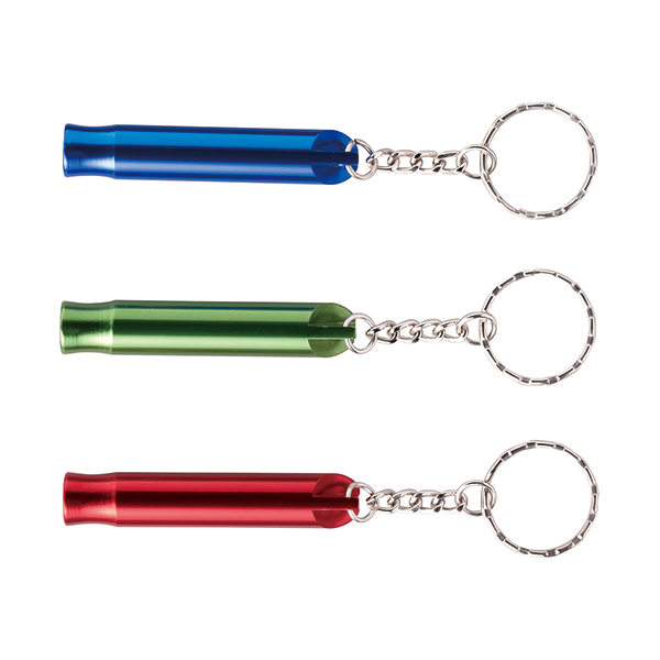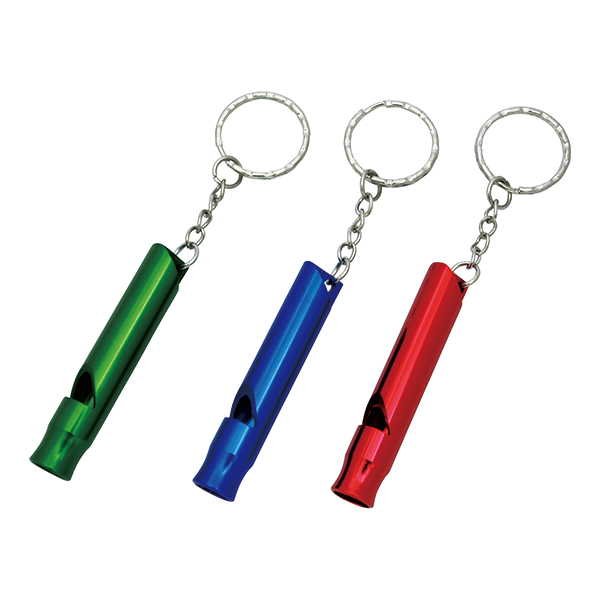 アルミボディでよく響く!メタリックな輝きが特徴のキーホルダー型ホイッスルです。