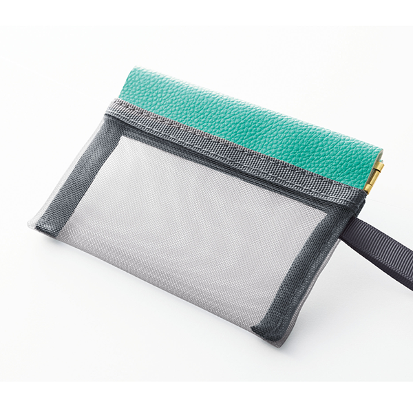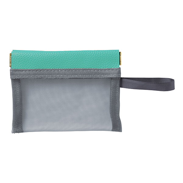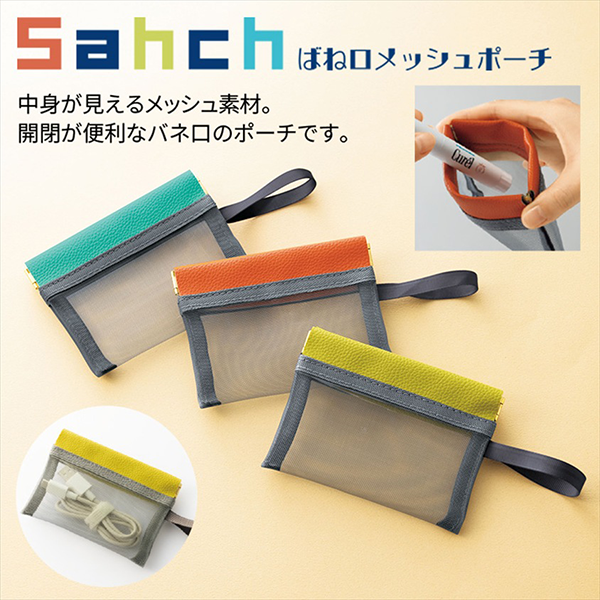 中身が見える便利なメッシュ素材と、ワンタッチで開閉できる便利なばね口仕様を組み合わせたポーチです。
