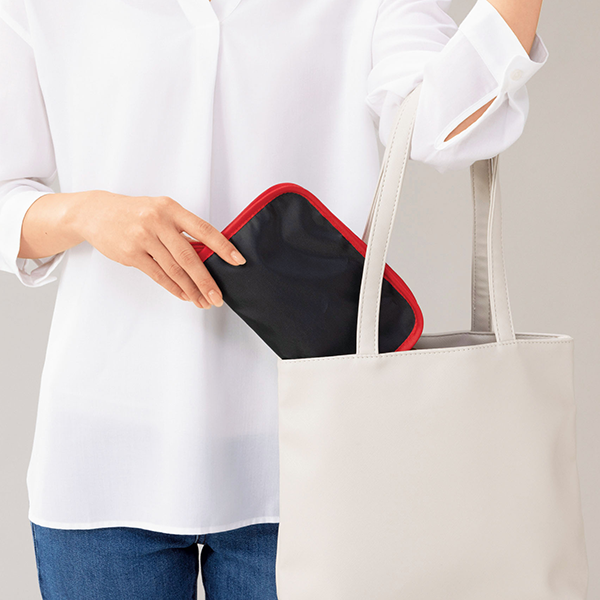 通勤・通学バッグの中に自然と収まるスリムなポーチ型の防災セットです。