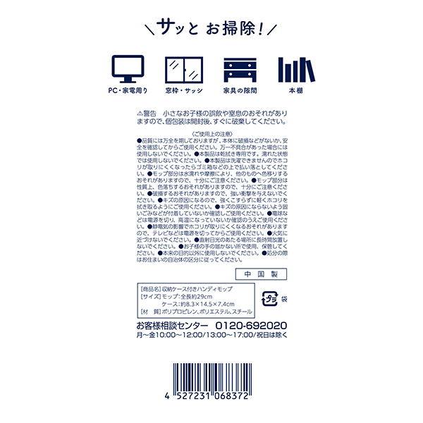 | 本体サイズ | モップ/全長約290mm、ケース/約83×145×74mm |
