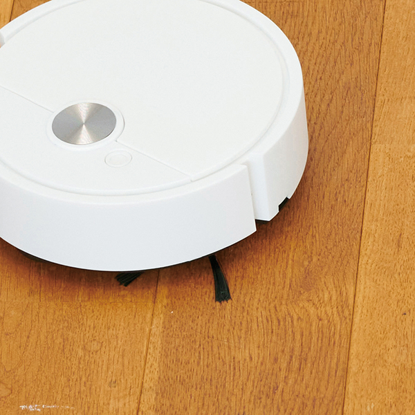 小さいけれど頑張り屋さん!フローリングの床や狭いベッド、ソファ下もスイスイお掃除する、円盤型のロボット掃除機です。