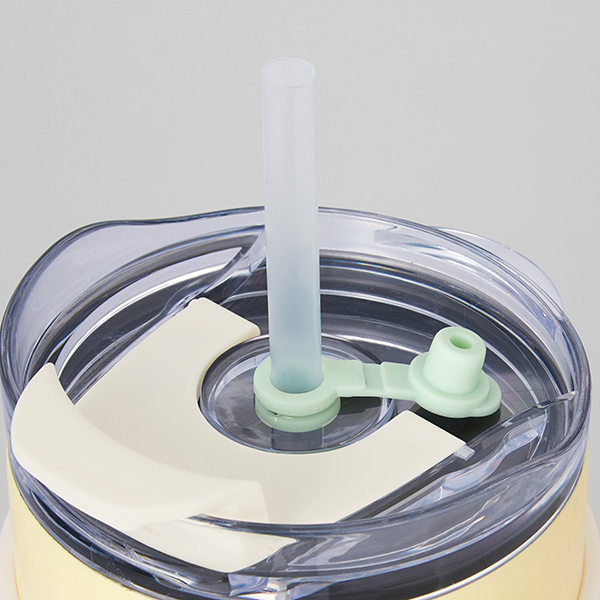 ドリンクを何度も補充せずに済み、日常のプチストレスから解放! オフィスで作業に集中したい時や、自宅で長時間の映画を楽しむ時などにいかがでしょう? 氷を気にせずゴクゴク飲めるストロー付き。ストロー用の穴をふさげるキャップも本体に付属しています。