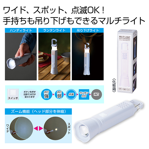 ワイド・スポット・点滅OK!手持ちも吊り下げもできるスリムなマルチライト。