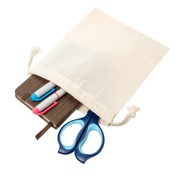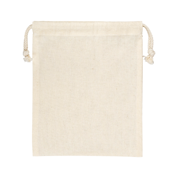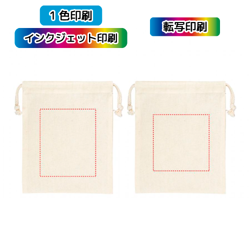 再生コットンを使用した環境にやさしい巾着袋。