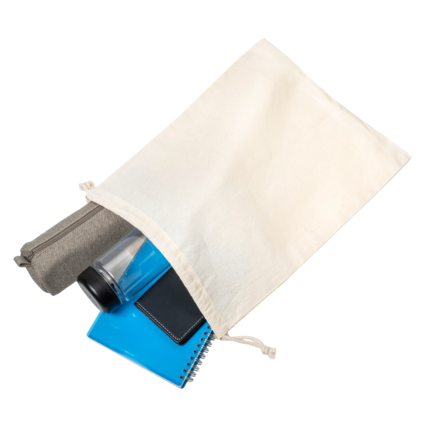 旅行やアウトドアの着替えや小物入れにも重宝する大きめサイズの巾着です。