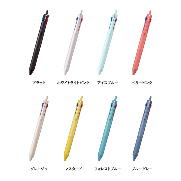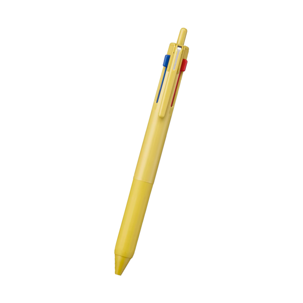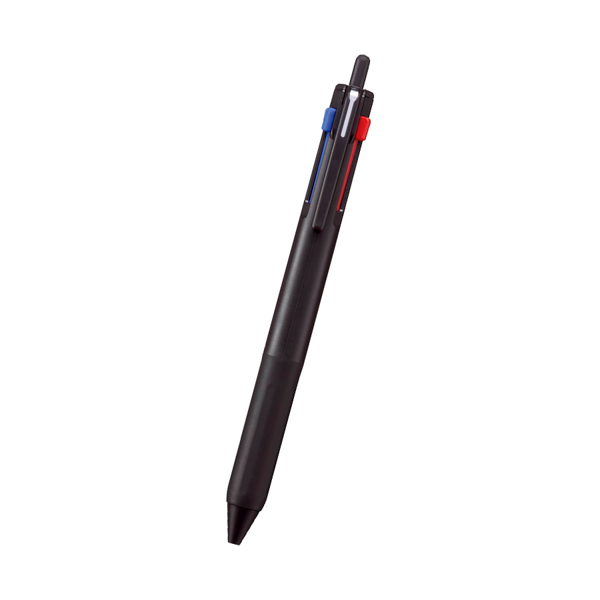 スタイリッシュなデザインが魅力のJETSTREAM3色ボールペンです。 黒・赤・青のベーシックなインク色を1本に集約しながら、もっとも使われやすい黒インクをノック式にすることで直感的に書き出せる仕様になっています。キャンペーンやブランドカラーに合わせやすいポップなカラー展開もおすすめポイントです。