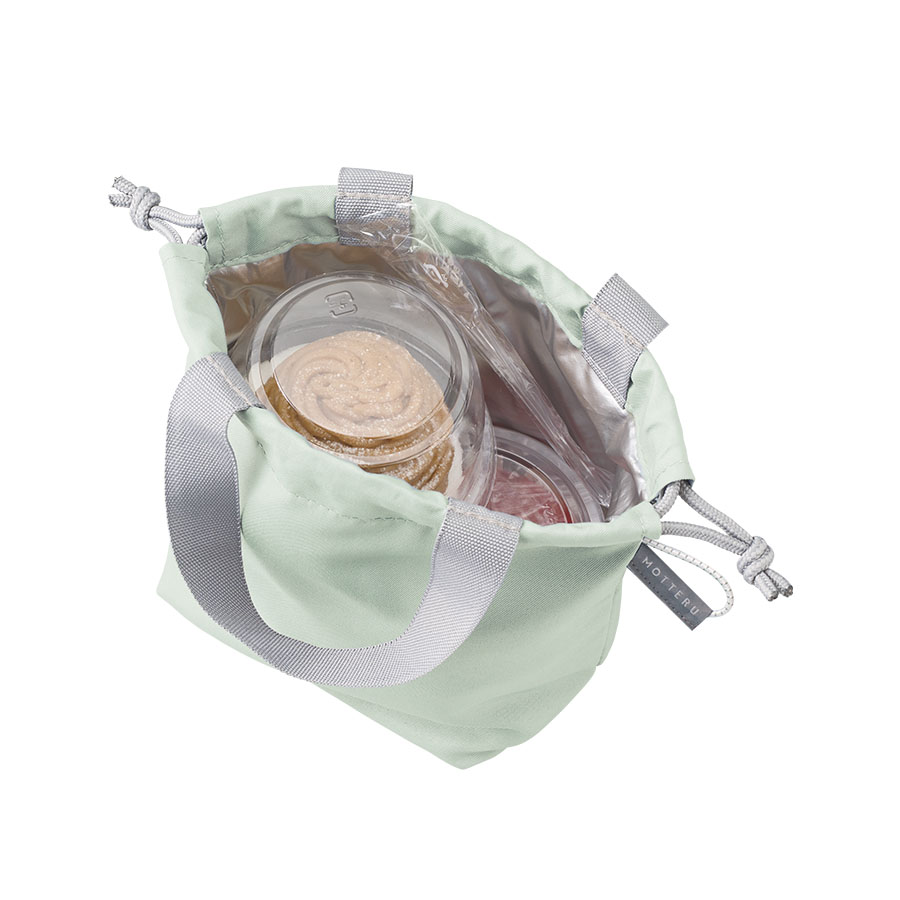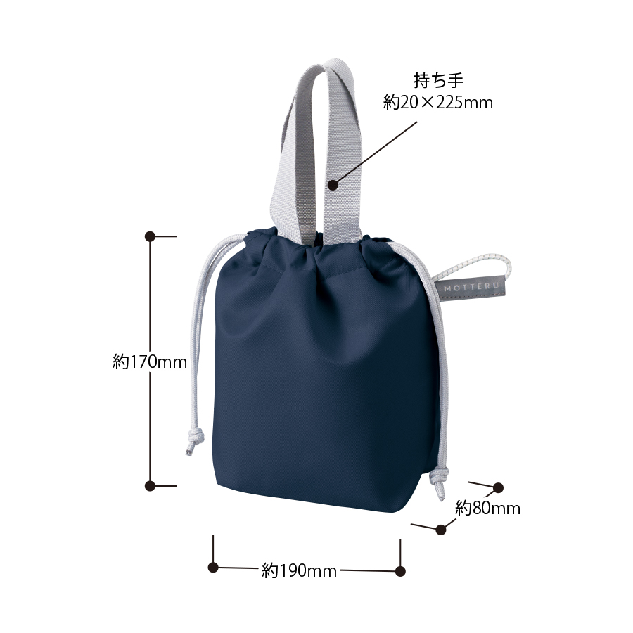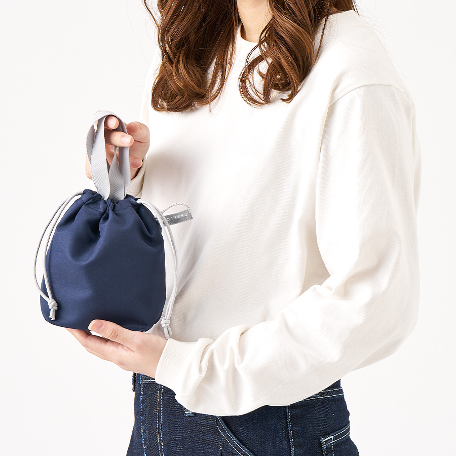 おにぎり約3つが入るサイズ感で、お弁当と別におやつを持っていくときやコンビニでのちょっとしたお買い物、お散歩ポーチとしてご活用いただけるちょうどよい大きさとデザインです。
