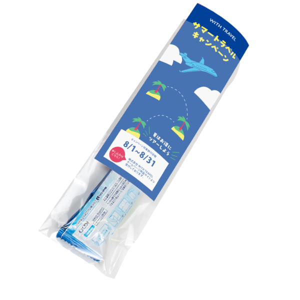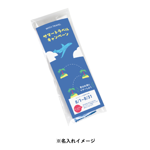 厚手のシートにたっぷり含まれた冷却ウォーターが気化熱で熱を逃がすことで快適さが持続する仕組み。シートは首にかけて使用できる46cmのロングサイズのため、しっかり体を冷やせます。オリジナルラベルを添えることで企業やブランドのPRポイントをしっかり表現できるため販促物としての訴求力も抜群です。知名度の高いメーカー製という信頼性も受け取りやすさにつながります。