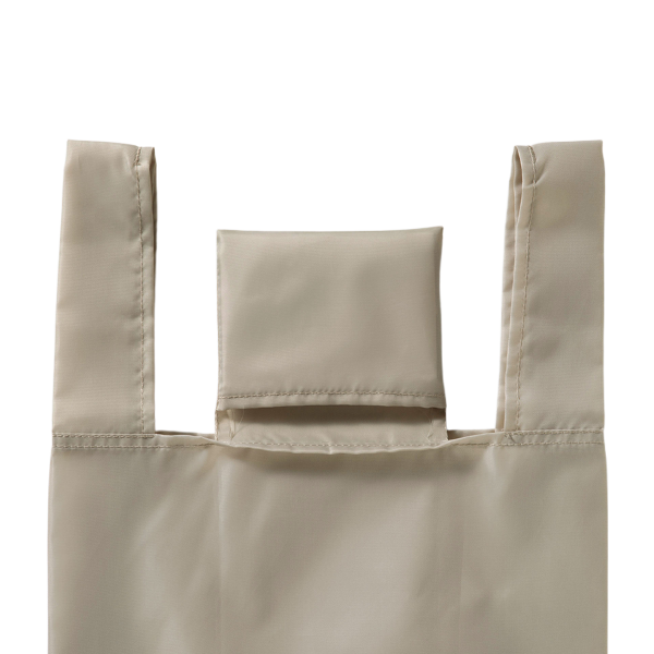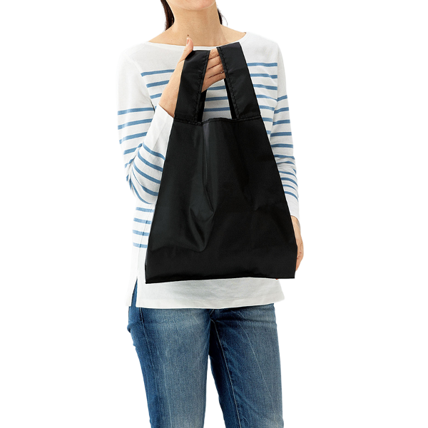 普段使いのバッグに忍ばせておける携帯性が嬉しいエコバッグです。 手のひらサイズに折りたたむことで内ポケットへすっきり収まります。ポリエステル素材で軽量ながら丈夫な作りのため、お買い物で大活躍します。安価なのも嬉しいポイント。エコ意識を訴求しながら、配布時のコストも抑えたいシーンに最適な一枚です。