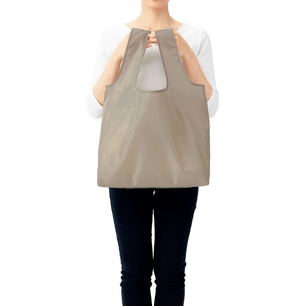 日用品やまとめ買いにも頼れる大容量仕様のエコバッグです。 広げればたっぷり入り、たたむと付属の内ポケットにもすっぽり収まるスマートなサイズ感が魅力。軽量ながらマチ付きでお弁当箱や日用品を入れても安定感があり、しっかり収納できます。環境意識を訴求しつつブランドの露出効果を高めるノベルティとしておすすめです。