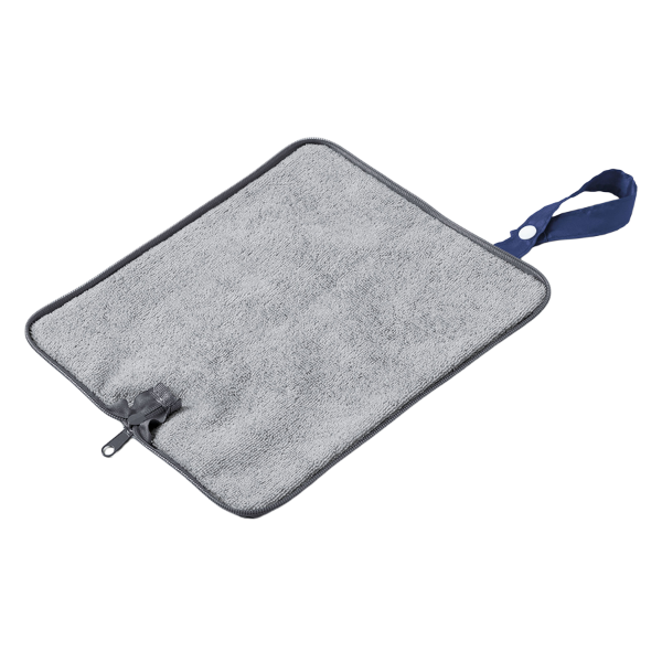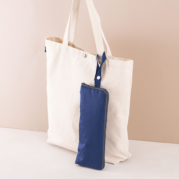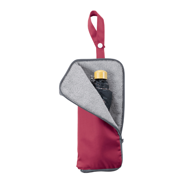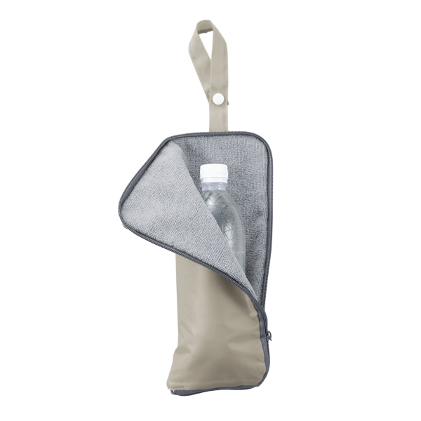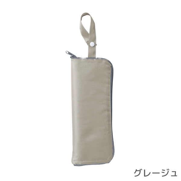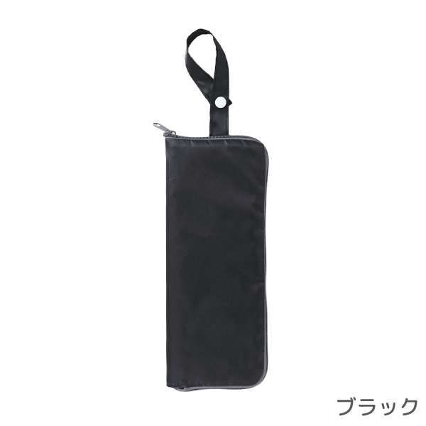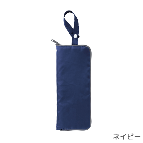 雨天時に折りたたみ傘をスマートに収納できる傘カバーです。 内側にタオル地を採用しているため水滴をしっかり吸収し、カバンの中が濡れるのを防いでくれます。傘を収納しない時はペットボトルホルダーとしても利用できるのも魅力。ループ付きでバッグへの取り付けも可能です。使わない時はコンパクトに折りたためます。日常に溶け込むノベルティとしておすすめです。