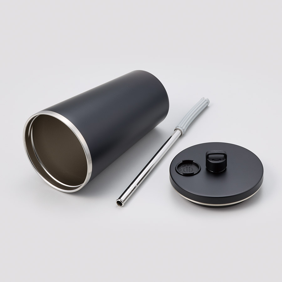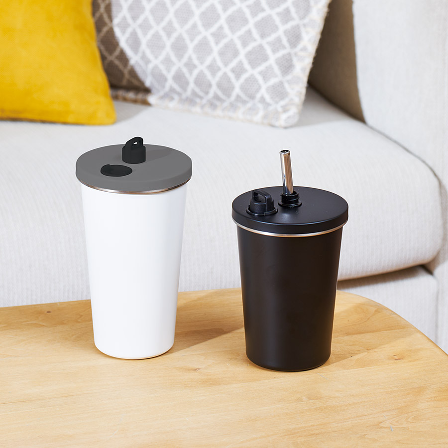 スタイリッシュなデザインが特徴のストロー付きサーモタンブラーです。