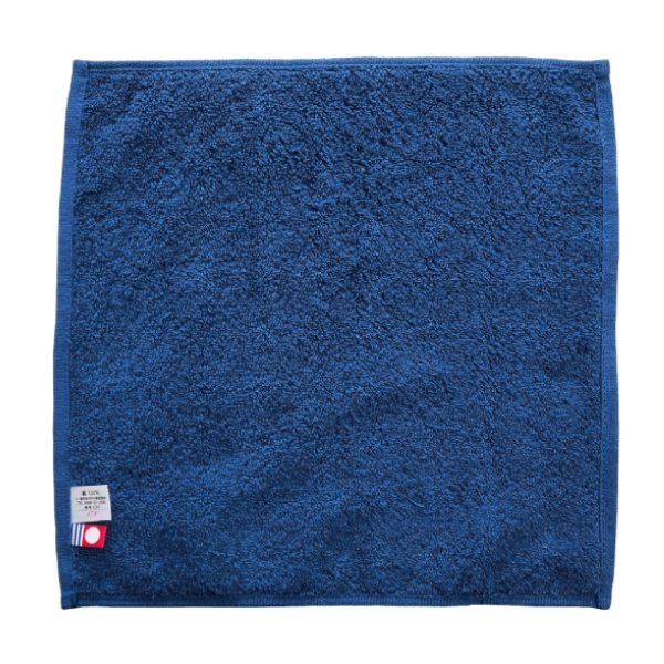 【印刷あり:100個~1本単位、印刷なし:40本以上20本単位】紺色の水中を泳ぐ赤い金魚が鮮やかな扇子と、手触りの良い綿の今治タオルハンカチのセットです。