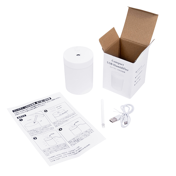 デスク上で使いやすいコンパクトな加湿器。USB接続式だからパソコンなどに接続して簡単に使用できます。 静かな超音波式だから仕事や勉強、就寝時にも使えます。