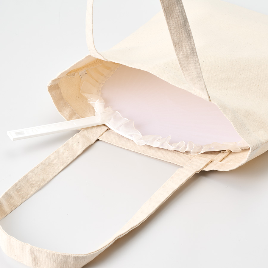 バッグ本体は共通のナチュラルカラーで、ハンドルとループは10色展開のためキャラクターやブランド、企業カラーなど案件に合わせてご提案いただけます。