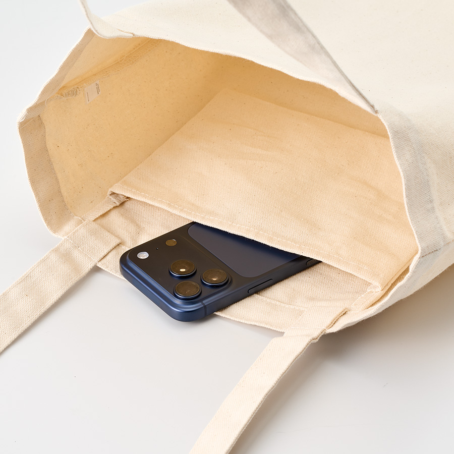 また内ポケット付きで、スマホなどちょっとした小物を入れるのに便利です。