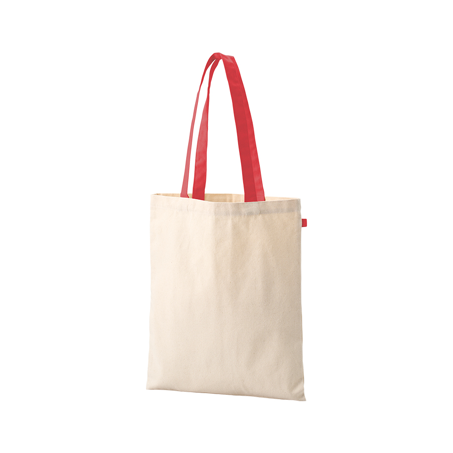 ループ付きのキャンバスフラットトートバッグです。フラットタイプでマチがなくすっきりとしたデザインです。