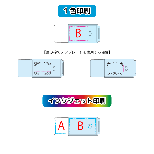 | 1色印刷範囲 | W21×H16mm、デザインテンプレート使用時/W19×H8mm(テンプレートと名入れ箇所は同色)。 |