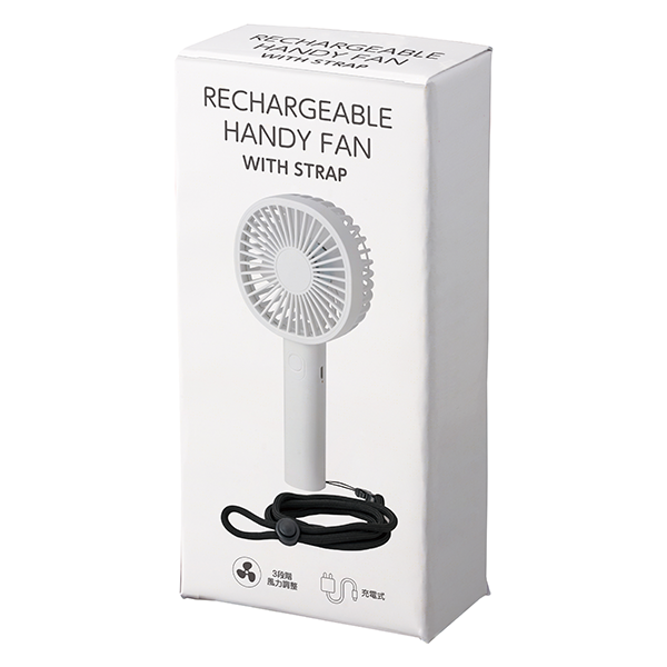 約3時間で充電完了!ハンズフリーで持ち歩けて、いつでもサッと手に取れるネックストラップ付きファンです。 携帯ファンはもはや夏を乗り切る必需品!風量は3段階で調節可能。ストラップは取り外し可能なので、お手持ちのものに付け替えることもできます。名入れが映えるホワイトボディー。