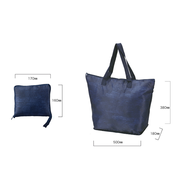 シンプルなデニム柄の大容量バッグです。 コンパクトに折りたためるため、お買い物からアウトドアまで幅広いシーンで活躍します。
