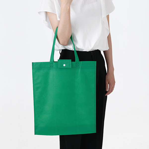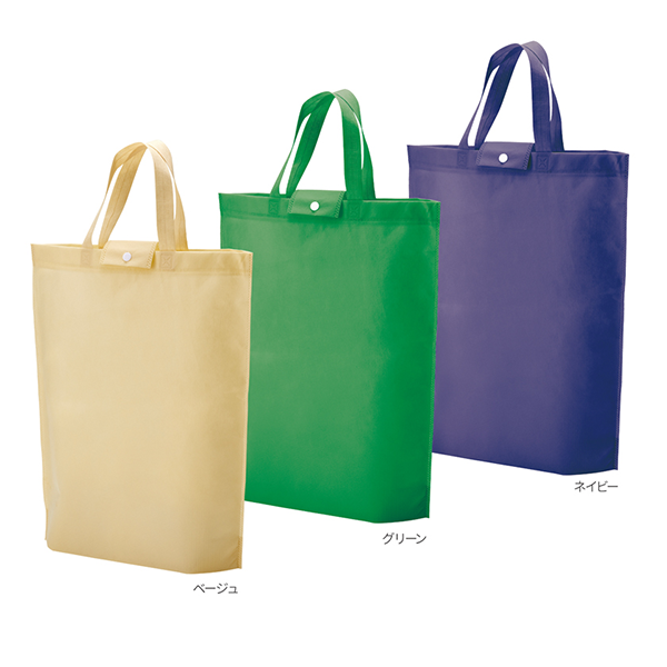 底マチ120mmの大容量!不織布バッグです。 口が閉じられる便利なホック付きで、中身の飛び出しも防ぎます。