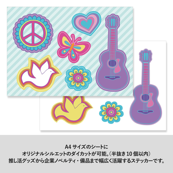 A4サイズのシートにダイカット(オリジナルシルエット)の抜きデザインが最大10個まで可能です。