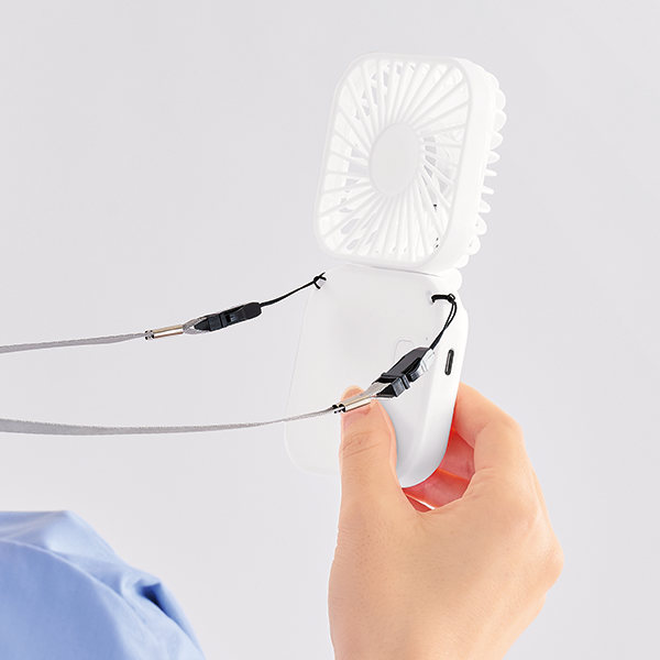 様々な場面で活躍する折りたたみ式のハンディファン+ネックストラップのセット。 不使用時はコンパクトに折りたためばかさばりにくいうえ、風量調節可能、エコ度の高い充電式などあらゆる面で快適にお使いいただけます。シンプルなデザインですから、名入れ効果も期待大!