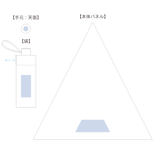 | 1色印刷範囲 | 持ち手天面/φ20mm、傘袋/ W40×H90mm、パネル/ W140×H50mm |