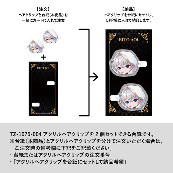 TZ-1075-004 アクリルヘアクリップを同時にご注文いただくか、ヘアクリップご注文後に追加でご注文いただく場合は、備考欄にクリップの注文番号を書き添えてご注文ください。