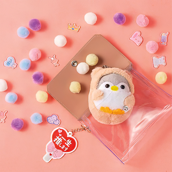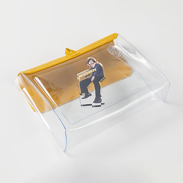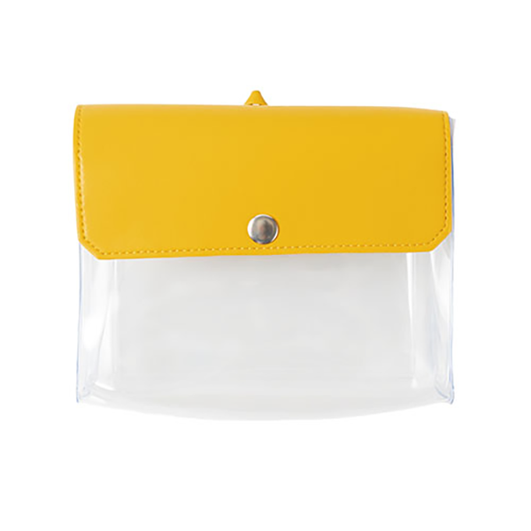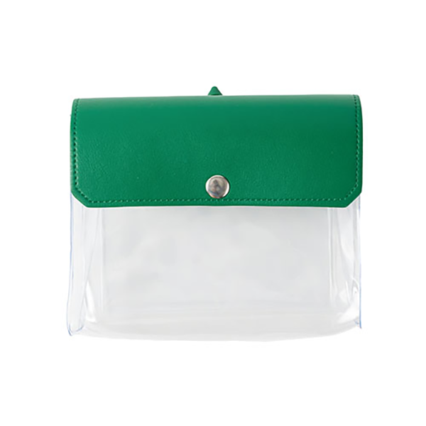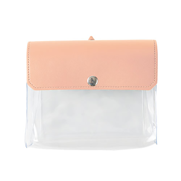 推し活にぴったり!全5色のカラフルなクリアポーチです。マチがあるため「ぬいポーチ」としてもぴったりです。 内側には平たいポケットが付いており、缶バッジやトレカを安定して収納できるのも嬉しいポイント。側面にリングが付いているため、キーホルダーを取り付けることもできます。