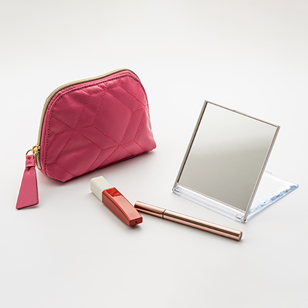外周をふちどるジュエリーカットが魅力のミラーです。 大きすぎず小さすぎずの便利なサイズで、普段使いでも旅先でも大活躍します。