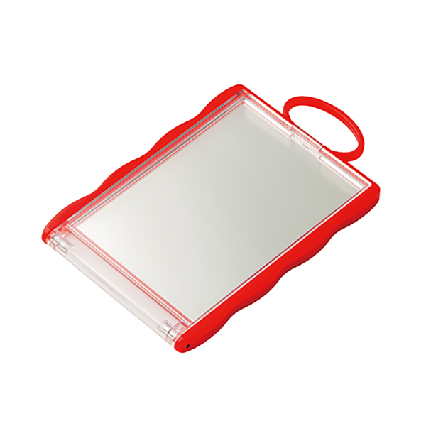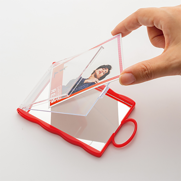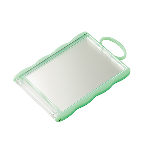 トレカサイズ(W63×H88mm前後)のカードを入れて持ち運べるミラーです。 なみなみした形状と全8色展開のポップなカラーが推しポイント。ミラー上部にはキーホルダーやカラビナを付けられる大きなループがあるため、バッグなどに付けるのにもぴったりです。